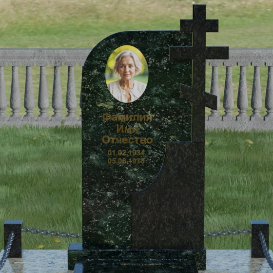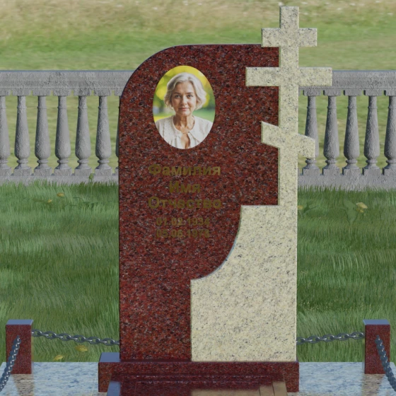 Выбор мемориального комплекса — это всегда глубоко личный процесс, стремление выразить в камне ту любовь и уважение, которые мы храним в сердце. Модель под артикулом 019 создана для тех, кто ценит благородную асимметрию и глубокий символизм. Величественная стела представляет собой сложную художественную композицию, в которой мастерски скомбинированы две контрастные фактуры. Левая часть памятника имеет мягкий, плавный изгиб, символизирующий завершенный жизненный путь, наполненный светом и душевным теплом. Правая же сторона акцентирована монументальным православным крестом, который является не просто элементом оформления, а неотъемлемой частью самой конструкции.