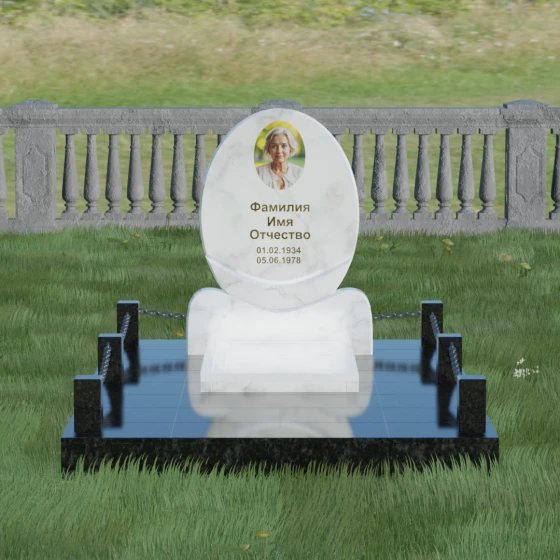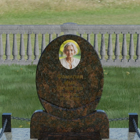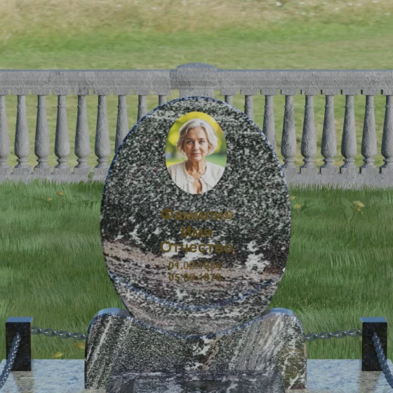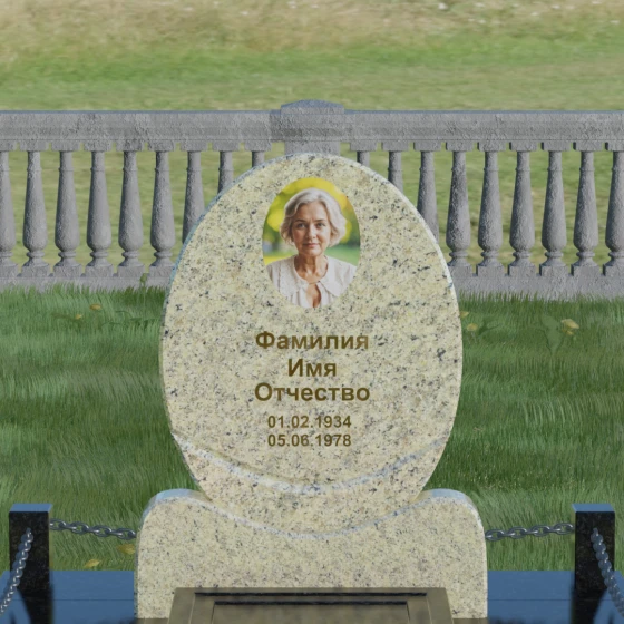 Данное ритуальное изделие притягивает взгляд своей совершенной гармонией и мягкостью линий. В основе композиции лежит безупречный овал — символ вечности, завершенности и бесконечного круговорота жизни. В отличие от строгих прямоугольных форм, эта стела выглядит более одухотворенно и спокойно, привнося на место захоронения атмосферу умиротворения. Особое внимание заслуживает художественная обработка основания: овальная плита плавно переходит в изящную подставку с мягкими «плечами» или волнообразными изгибами, которые создают надежную опору для всей конструкции. Каждая грань камня проходит многоступенчатую ручную и станочную обработку, что позволяет добиться идеальной гладкости. Отсутствие острых углов делает надгробие визуально легким, несмотря на значительный вес натурального камня.