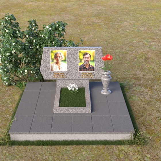 Представляем вам ритуальное изделие – памятник на могилу (Артикул: ПГ018), архитектурное решение, в котором строгость линий сочетается с глубоким символизмом. Это не просто надгробие, а осязаемое воплощение уважения и вечной памяти об ушедшем человеке. Стела, выполненная в форме сдержанного прямоугольника, слегка расширяющегося кверху, символизирует восхождение души к небесам. Грани камня тщательно обработаны, создавая игру света и тени, подчеркивающую монументальность и значимость этого места памяти. Слева и справа, верхние углы стелы имеют элегантные скосы, смягчающие строгость формы и придающие ей утонченность. На зеркальной поверхности камня выгравированы портреты усопших, их имена и даты жизни, выполненные с безупречной точностью и вниманием к деталям. Под портретами располагаются лаконичные надписи, выполненные строгим шрифтом, добавляющие памятнику сдержанности и достоинства. Дополнительная горизонтальная плита, расположенная перед стелой, создает ощущение завершенности и служит местом для возложения цветов или свечей. Этот элемент композиции выполнен в той же стилистике, что и основная стела, поддерживая общую гармонию и пропорциональность мемориального комплекса.
