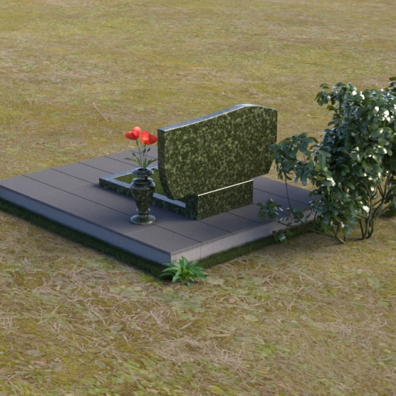 Величественная стела памятника ПГ020 представляет собой монументальное сочетание строгости линий и мягких, сглаженных углов, создающих впечатление надежности и умиротворения. Верхняя часть стелы имеет плавный, волнообразный изгиб, словно склоненная голова в знак скорби и уважения. Боковые грани искусно скошены, образуя элегантные фаски, которые придают памятнику дополнительный объем и глубину. Зеркальная полировка черного гранита отражает небо, создавая ощущение легкости и воздушности, несмотря на массивность конструкции. Нижняя часть стелы переходит в прямоугольное основание, которое надежно удерживает всю композицию. Рядом располагается горизонтальная плита, также выполненная из полированного гранита, создавая дополнительное пространство для цветов или памятных вещей.