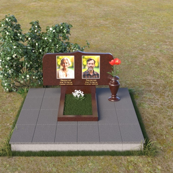 Оформление: Для данной формы надгробного сооружения рекомендуется использовать строгий шрифт для гравировки ФИО и дат жизни. Портреты лучше выполнять в технике глубокой гравировки, чтобы они сохранили свою четкость и выразительность на долгие годы. Дополнительно можно добавить эпитафию, отражающую основные черты характера и жизненные ценности ушедшего.